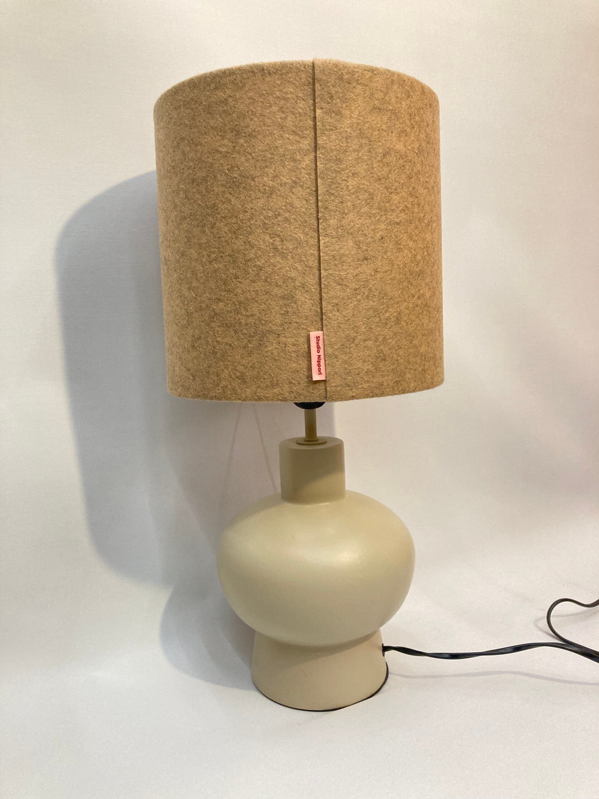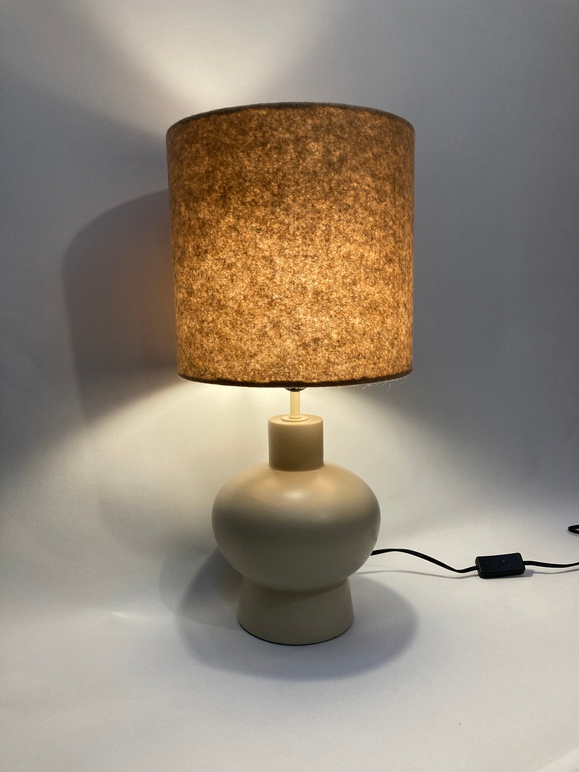Breng rust, warmte en karakter in je interieur met deze stijlvolle designlamp van Studio Nippori. De lamp bestaat uit een unieke bolvormige voet in zandgrijs mat keramiek en een handgemaakte lampenkap van zandkleurig vilt met een subtiele transparante binnenfolie. Deze combinatie zorgt voor een zacht diffuus licht en een natuurlijke uitstraling – perfect voor een Scandinavisch, Japandi of modern interieur.