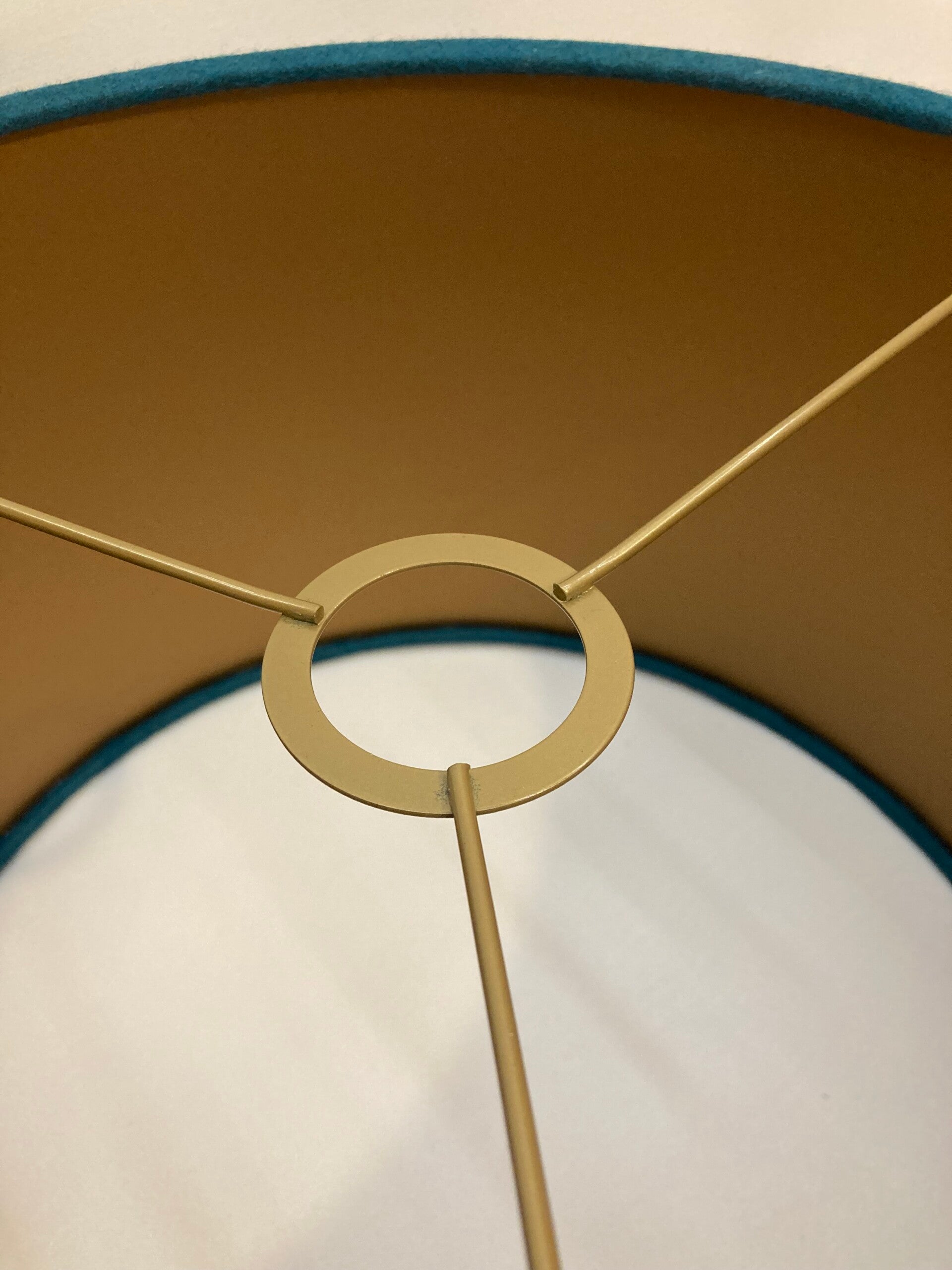 Deze met de hand gemaakte lampenkap in petrol vilt met een koperkleurige binnenkant is een echte blikvanger – ontworpen en vervaardigd in Nederland door Studio Nippori.