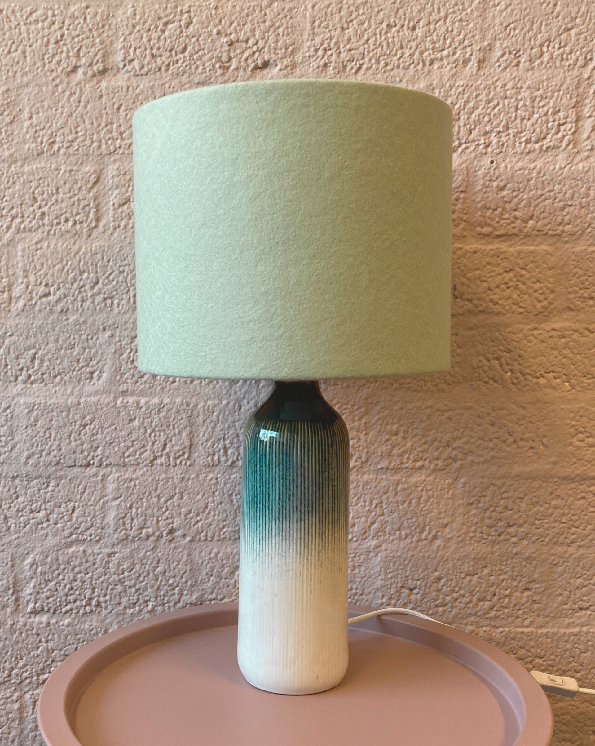 Tafellamp met handgemaakte wolvilt lampenkap jadegroen