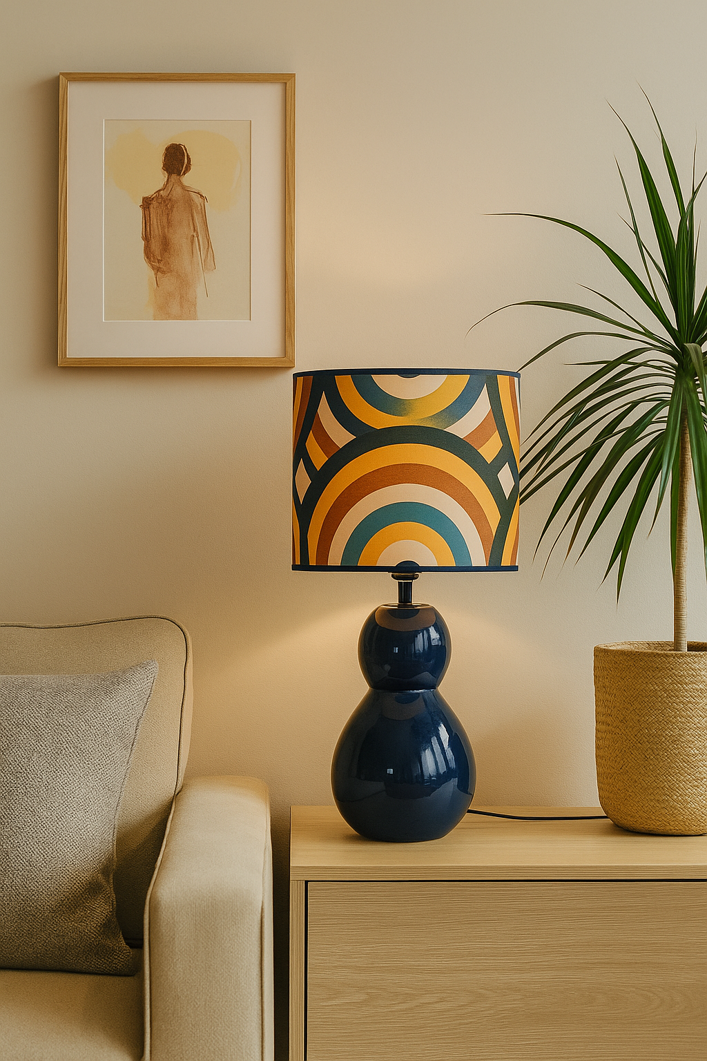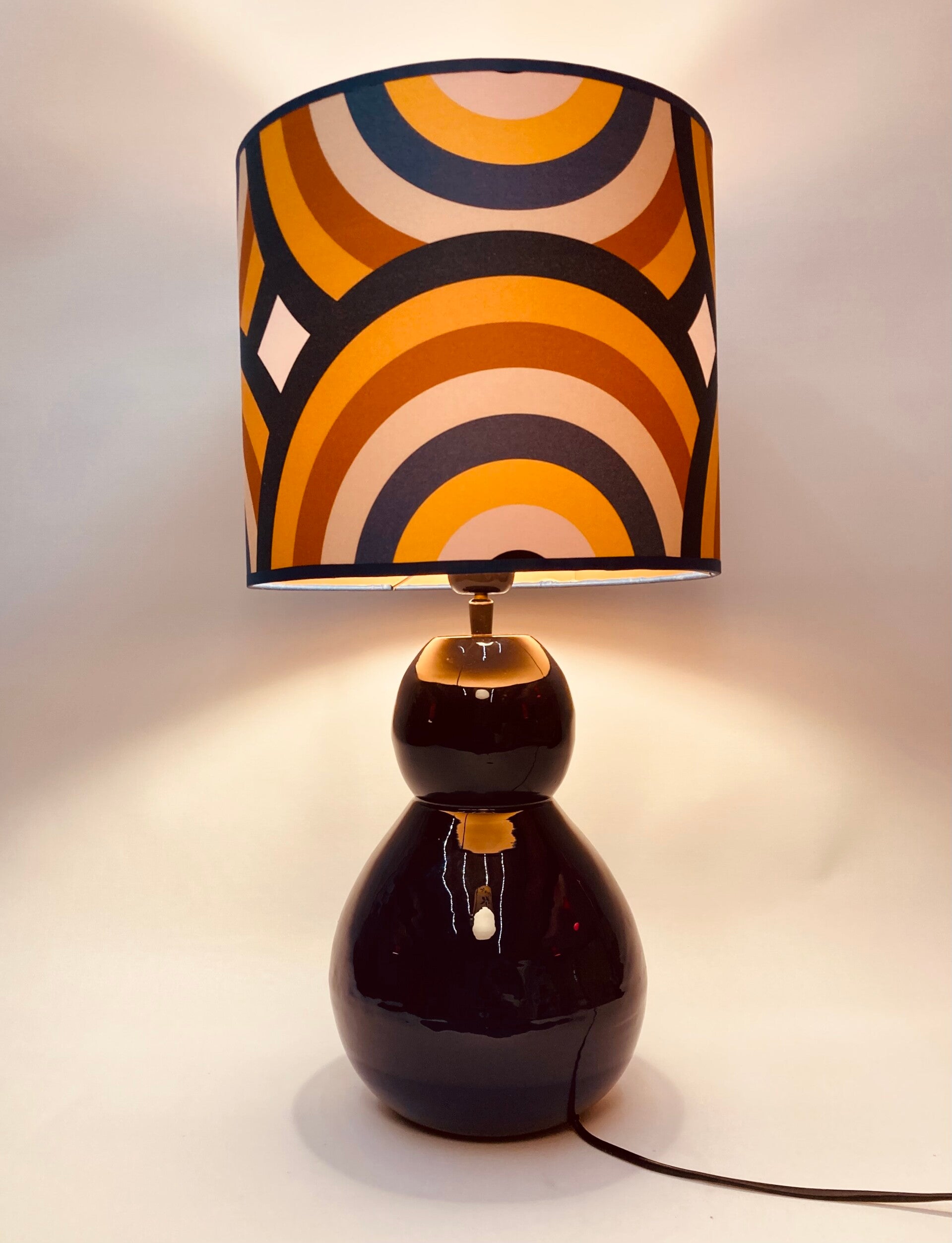 Breng sfeer en stijl in je interieur met deze unieke tafellamp van 60 cm hoog en 30 cm breed. De opvallende, handgemaakte lampenkap is een echte eyecatcher met zijn kleurrijke retro-patroon en warme tinten. Elk exemplaar wordt met zorg vervaardigd, waardoor geen enkele lamp exact hetzelfde is. Perfect voor in de woonkamer, op een dressoir of nachtkastje – deze lampenkap combineert vakmanschap met een speels ontwerp. Dankzij de harmonieuze combinatie van design en kwaliteit past deze lamp moeiteloos in zowel een vintage als modern interieur. Laat jouw ruimte stralen met deze originele blikvanger van Studio Nippori. Let op, dit is alleen de lampenkap, voet is verkocht.
