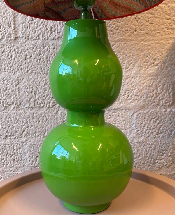 Breng kleur en karakter in je interieur met deze unieke tafellamp van 71 cm hoog. De glanzend groene metalen voet vormt een stijlvol contrast met de speels golvende print van de lampenkap. Een echte blikvanger die perfect past bij een modern, retro of eclectisch interieur. Combineer hem met kussens of accessoires in de kleuren van de kap en je creëert direct een harmonieus geheel.